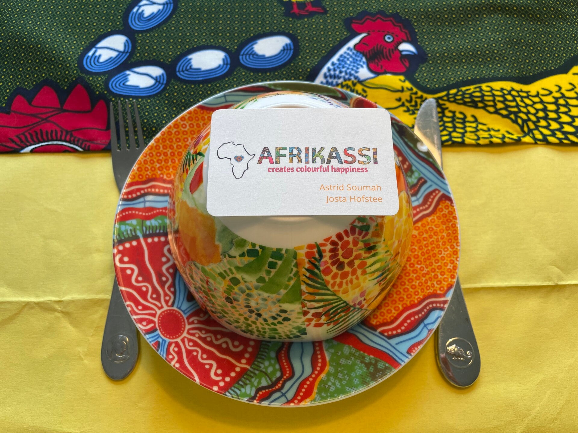 Unieke tafelloper van vrolijke Afrikaanse stof! Perfect voor de paasdagen.