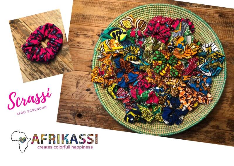 Uniek kleurrijk haarelastiek - natuurlijk een Afrikaanse stofcreatie.